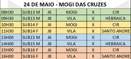 Por fim, na categoria Sub 16 Feminino, participam SESI Barretos, SESI Jundiaí, SESI Mogi das Cruzes, SESI Ribeirão Preto, SESI Santo André, SESI Vila Leopoldina, Internacional de Regatas e Sociedade Hípica Brasileira.