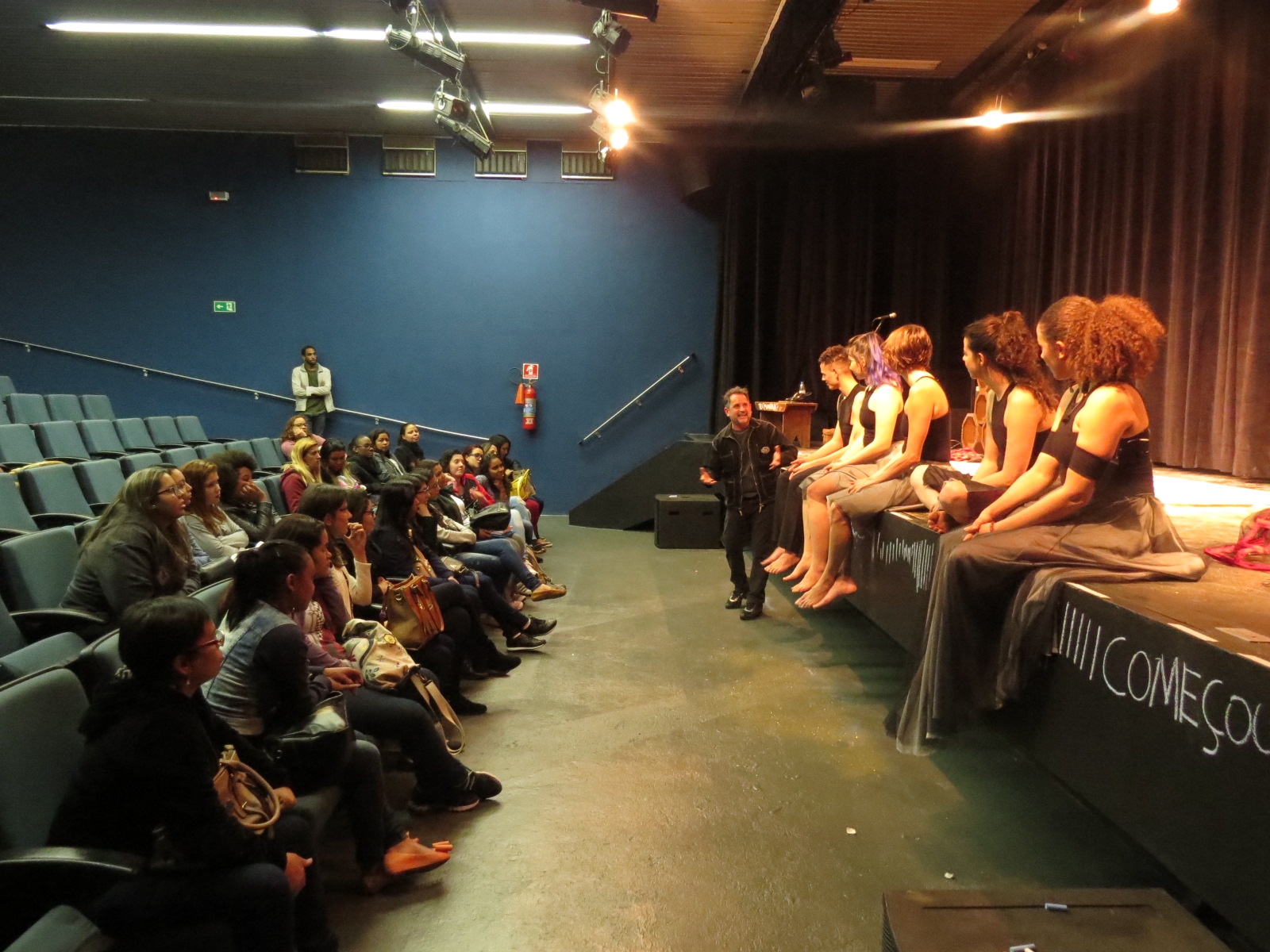 Alunos de Pedagogia prestigiaram o espetáculo “Em Tempo” e tiveram um bate-papo com os artistas sobre arte e educação.